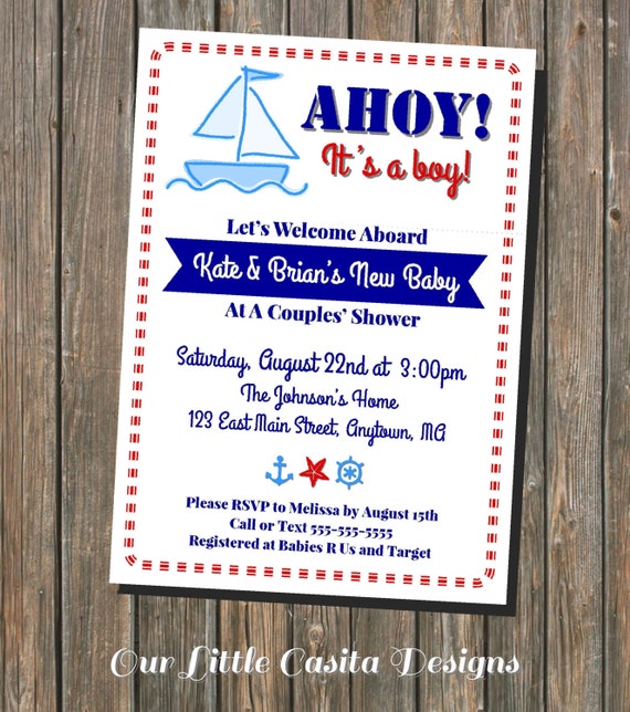 Baby Boy Shower Invitations Nautical Theme If you are going to have a baby boy, nautical is a theme that is appropriate for you to consider when baby shower event. Prepare yourself for some of the most adorably preppy. My cute neighbor is throwing a baby shower/luncheon for her sister who is pregnant with baby #2. Here are two cute spookcatular invites if nautical is your baby shower theme, take a look at this navy blue and gold invite for baby boys. Beach baby shower invitation instant download, baby boy, nautical, coastal, gender neutral, sea theme, template, summer, blue. » nautical themed baby showers are quite popular for little ones on the way.