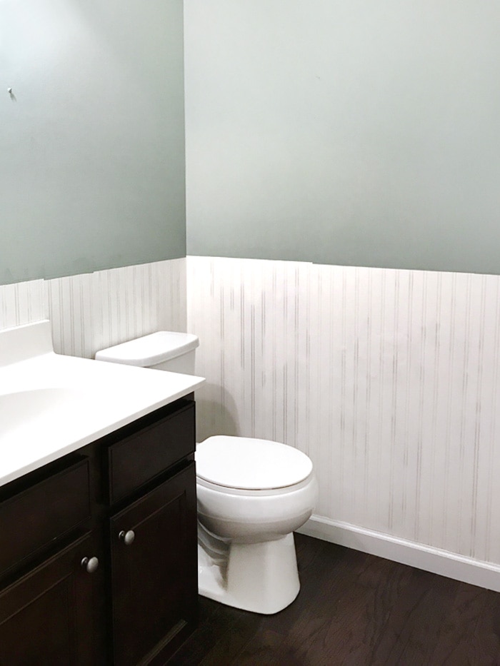 Hey all, i'm so excited to show you the beadboard wallpaper in our powder room!