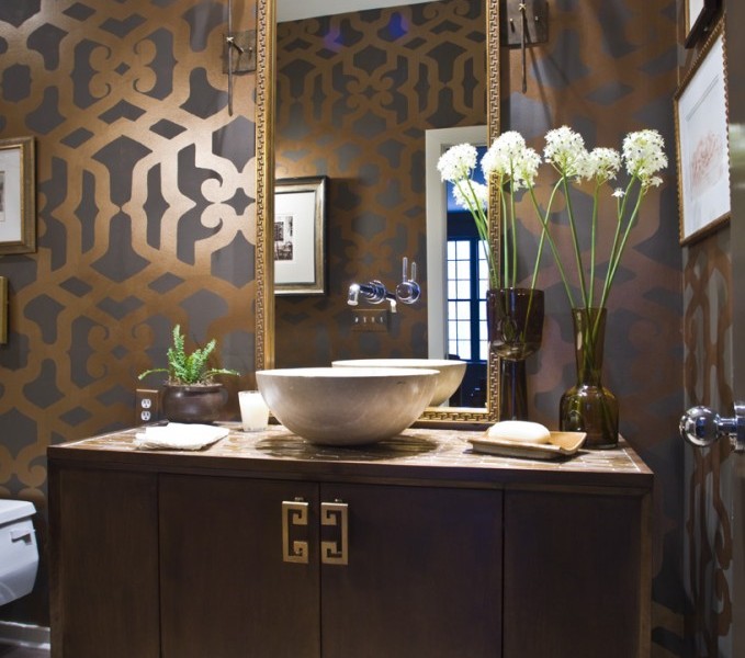 Elegant Wallpaper For Powder Room. From my domain to house beautiful. Carlyle designs project on carlyledesigns.com i am obsessed with the trend of funky and bright wallpapers that have been popping up in powder rooms all over the internet. It's easy to get that hollywood glamour style by using wallpaper. From cole and son albemarle collection 2012.