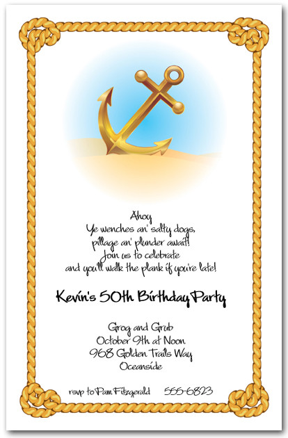 Nautical Theme Invitations. Your guests won't be able to say no when they open these personalized nautical invitations. Nautical event invitations will get your guest excited about your up coming nautical theme party. Blue and white are also most popular wedding colors. The nautical theme is popular for a lot of reasons.