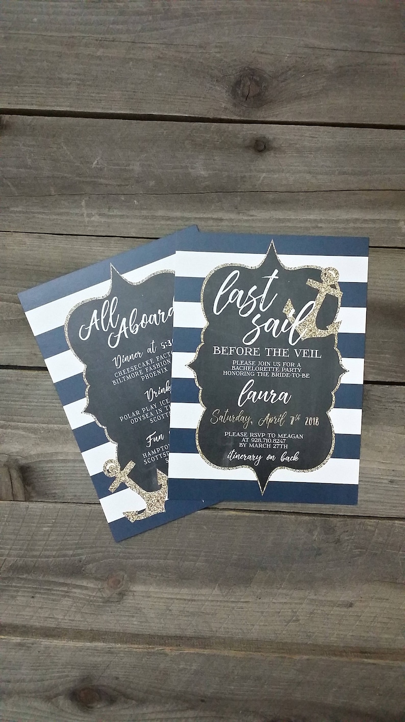 Nautical Themed Bachelorette Party Invitations Find customizable nautical bachelorette party invitations & announcements to share with the women you care about the most, right here at zazzle! Browse our selection of customizable bachelorette designs or upload your own art. It's amazing how much can and will change when send them an invitation designed in canva. Bachelorette party invitations by canva. Coming up with naughty bachelorette party invitation wording can be a challenge. When you're ready to start building your bachelorette party invitations, you'll want to double check that you have all the most important information rsvp to jessica at 555.1000 by may 12th. We have some great bachelorette party invitations to start the hype and kick off an awesome bachelorette party! Consider an active game, such as a bachelorette party scavenger hunt.Leave the men behind, because tonight it is all about the bachelorette! Party favors are never mandatory but if you have the budget for it, a small parting gift is a thoughtful memento.