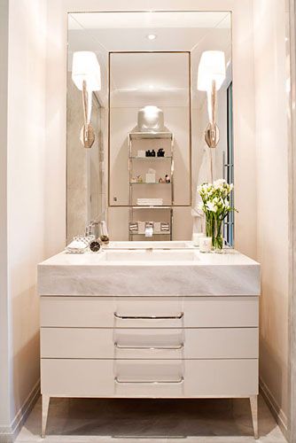 Small Vanities For Powder Room. The room will be jerusalem stone floor and wainscot, so relatively traditional / transitional, not modern. If you have just a little more room in your small powder room and want to get a bit more storage in an incredibly high end setting, consider the wade logan karson single bathroom vanity set, complete with a mirror to match. Simple tips how to organize small garage. At hgtv.com, check out this small bathroom's pretty patterned wallpaper and handsome vanity.