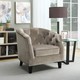 Taupe Velvet Accent Chair. Deck out the dining room with rattan chairs to give the space some texture. This stylish oversized wingback arm chair features buttery soft velvet, button tufting, high density foam padded seat. Antiqued brass nailhead trim anchors top edge pleating rows for a vintage touch. Giles, featuring a upholstered seat and back wrapped in taupe tone velvet, makes not only for a comfortable seating option but also a visually enticing giles is a premium chair made from taupe toned, plush velvet.